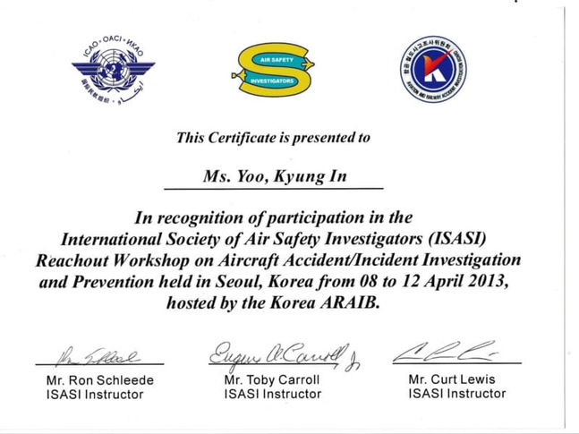 2013.08.01.~현재 : 국제항공안전조사관협회(ISASI) 정회원, 한국대표